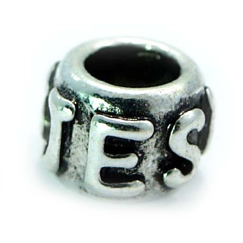 Here are some of the great features of (Free Shipping!) " Jesus Raised Letters " Antique'd Silver Bead Charm Spacer Pandora Troll Chamilia Biagi Bead Compatible
